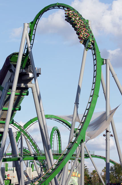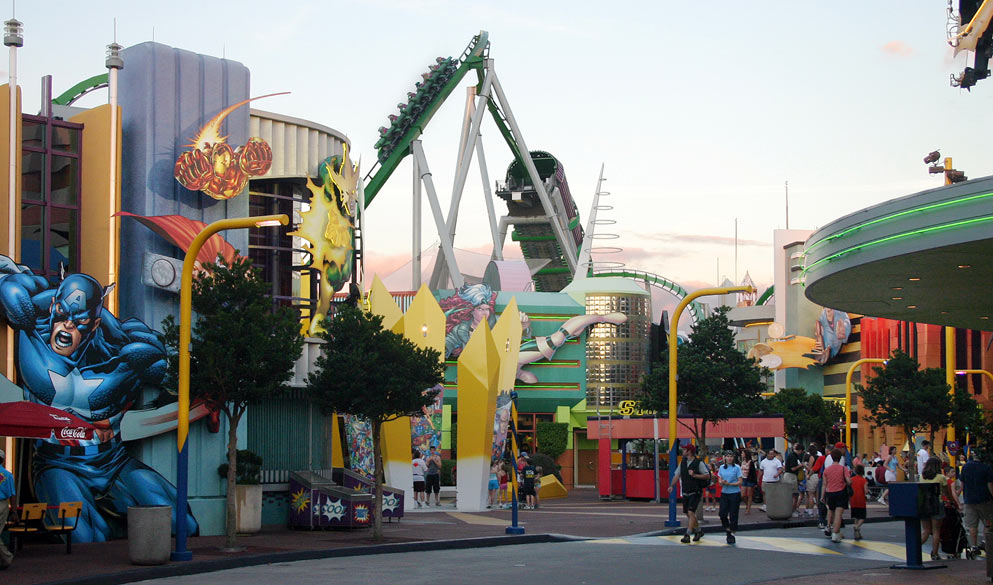 benachbarten Hulk Coaster auf dieses unglaubliche High-Tech Fahrgeschäft