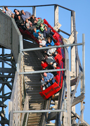 an die Scenic Railway im dänischen Vergnügungspark Bakken. Dort gibt