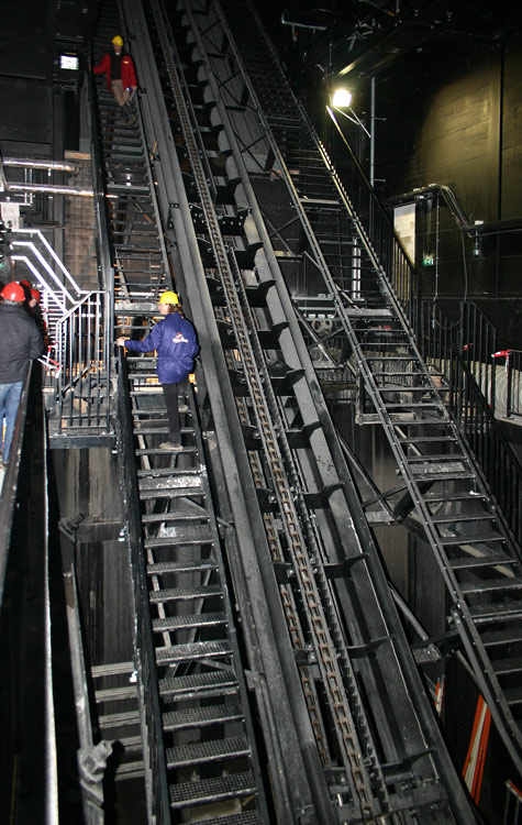 erklimmt das Fahrzeug den 22,5 Meter hohen Lift, dessen Auffahrt komplett