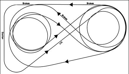 Fahrten auf die andere Seite der Schleife prägen das Bild. Geradlinige