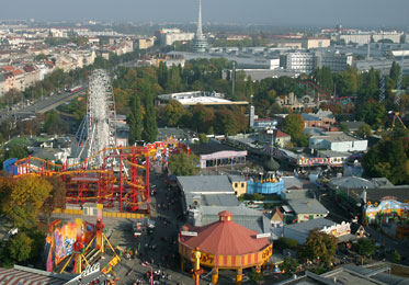Wurstelprater. Im Westen der Hauptallee siedelten sich Weinwirte,