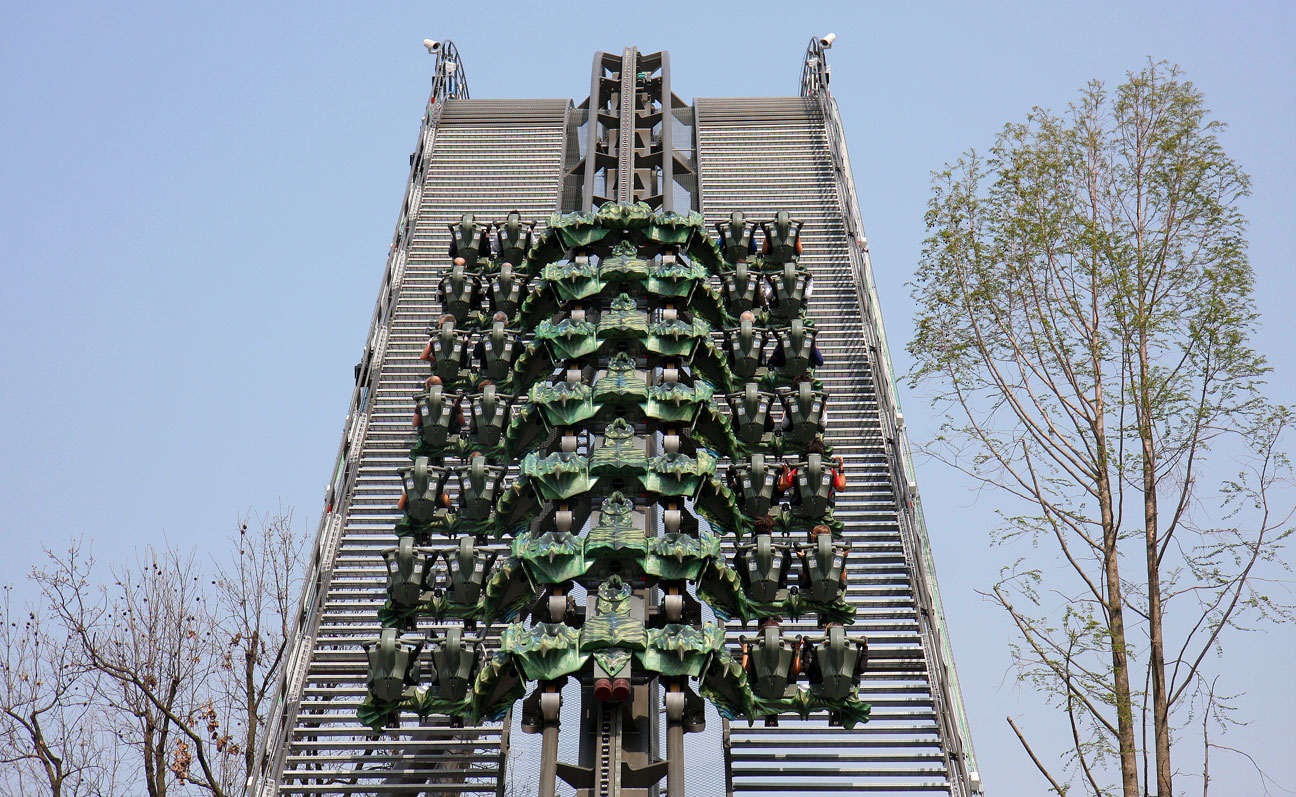 nur 10 Meter hohen Flat Spin, der den Zug wieder einmal gegen den Uhrzeigersinn dreht. Die