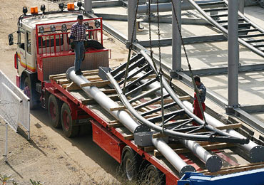 die Stahlelemente dem Aufbauteam von Gerstlauer direkt an der Achterbahn